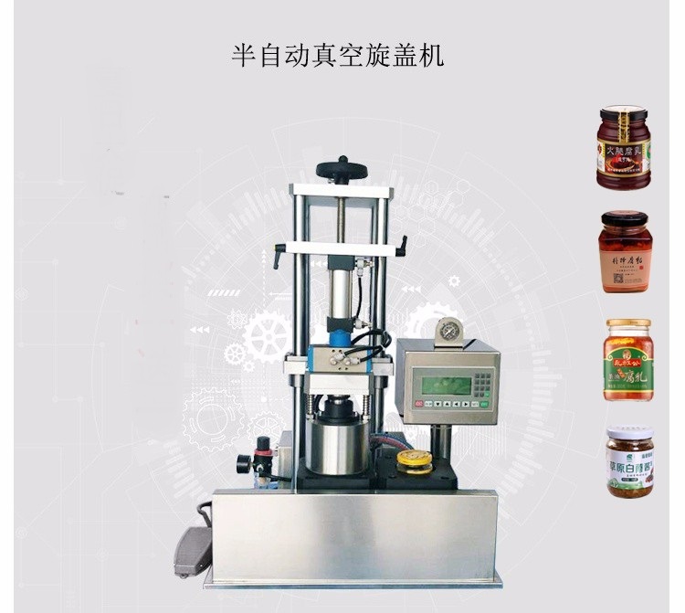 半自動辣椒醬真空旋蓋機顧名思義是旋蓋真空一體機,集抽真空旋蓋于一體